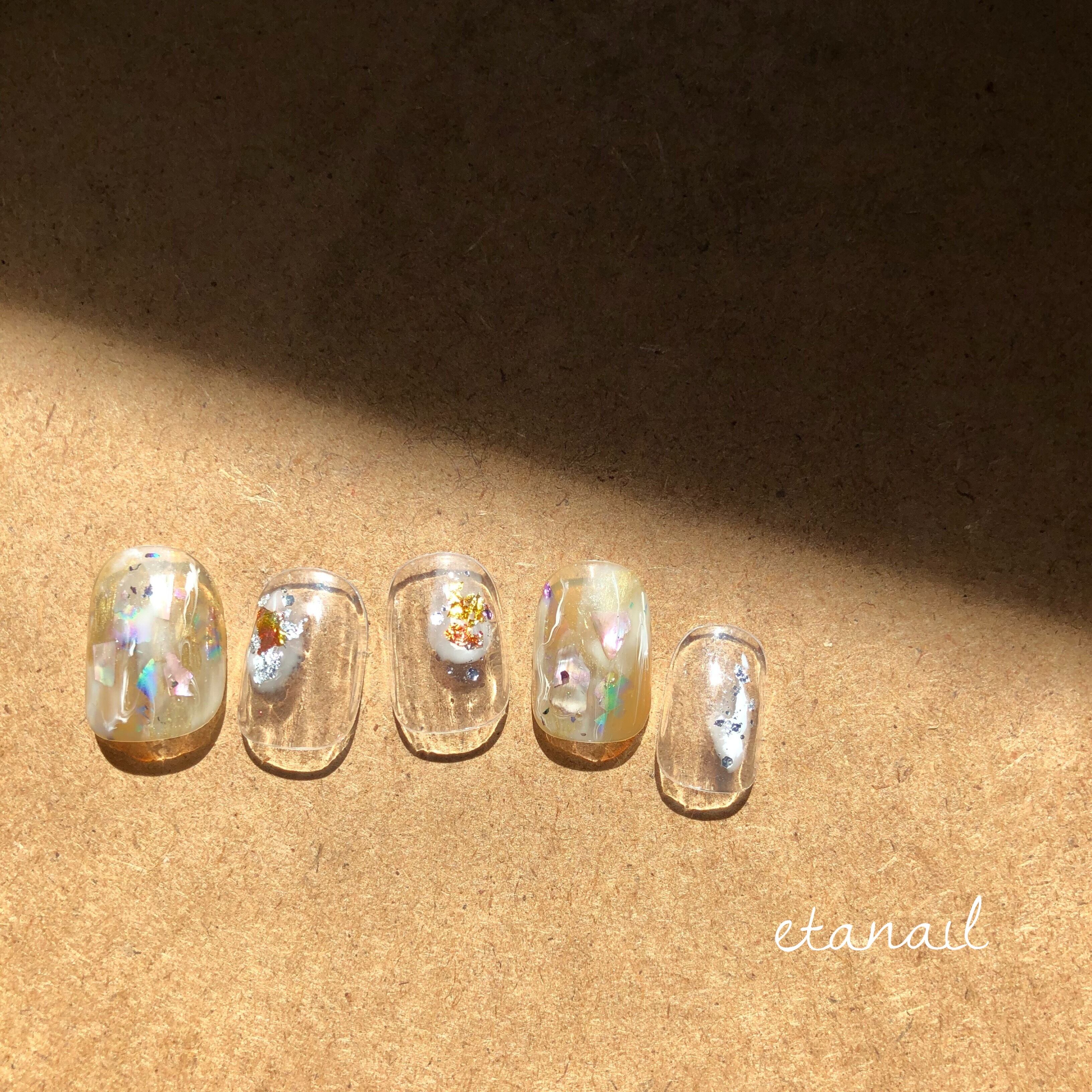 クリアベースにニュアンスネイルと、キラキラを